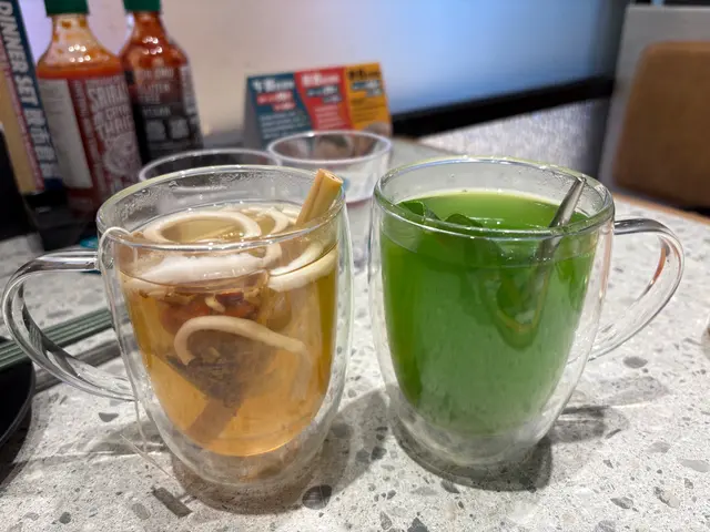 🍹野飲朋友點左斑斕生薑茶,斑斕味清香,生薑暖胃,飲落帶甜;我就叫左香茅牛蒡椰子茶,牛蒡味同椰子味突出,仲有一條條嘅椰子肉,飲得又食得。