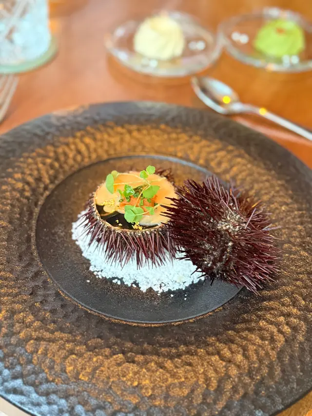 賣相相當吸引,原個海膽咁上枱,北海道海膽新鮮濃郁,配埋蟹肉、面層是蠔啫喱同墨汁薄紗,每一啖都充滿鮮甜。