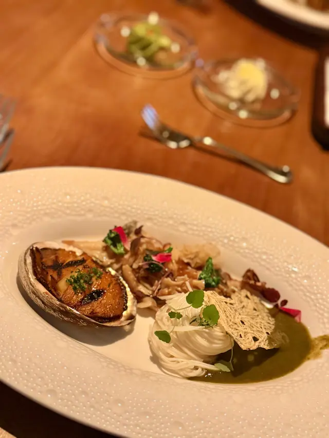 炭燒鮑魚外皮微焦,保持到嫩滑彈牙,另有日式素麵同蟹味噌,充滿驚喜嘅一道菜色