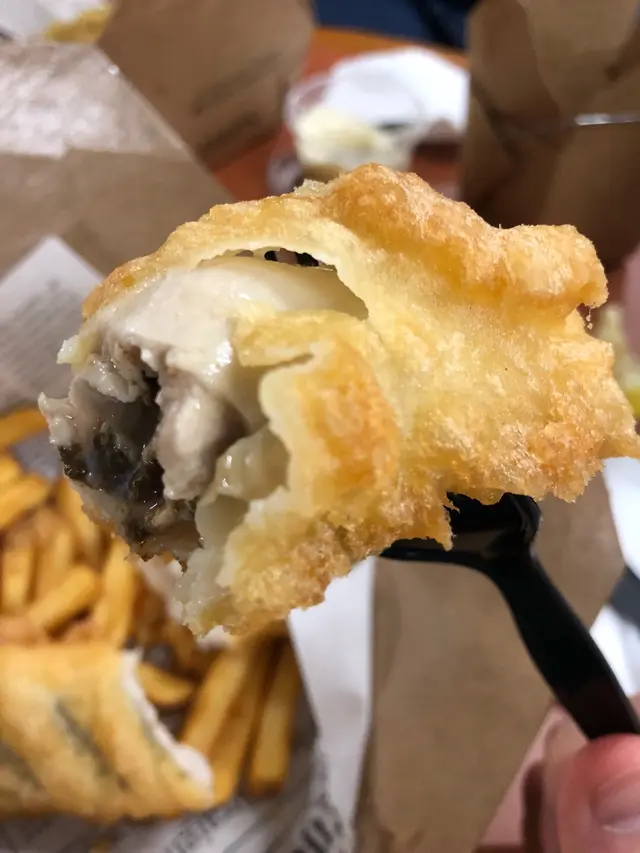 維港旁的炸魚薯條 Katrina122Level 32018-11-0469 views Follow 乘船前往尖沙咀,在這間立食炸魚薯條買了兩set Fish N‘ Chips另加炸蠔三件,碰巧碼頭的公眾椅子桌子剛好有位,吹着海風吃炸魚薯條還是第一次!試了Signature fish and chips($68)及Lemon Pepper fish and chips($77),兩款魚肉質地好像有些不同,外脆內軟,好食。沒有很厚的炸漿,值得推介嘅係啤酒炸蠔,size好大,好有蠔味又多汁,$48算抵食,這個份量剛剛好,會再光顧。Signature Fosh and Chips$68Beer OysterLemon Pepper Fish and Chips$77The above review is the personal opinion of a user which does not represent OpenRice's point of view.1Share維港旁的炸魚薯條 白鬍子炸魚薯條 https://s.openrice.com/QrKT0gEim00Report Post Ratings4Taste4Decor4Service4Hygiene4ValueRecommended DishesSignature Fosh and Chips$68Lemon Pepper Fish and Chips$77Dining MethodDine In