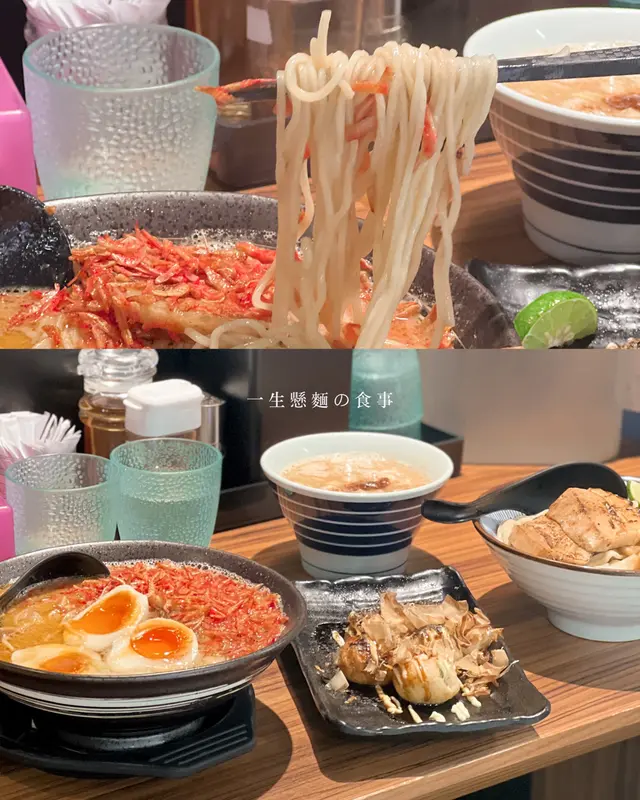 總算一嚐人氣拉麵店 Simpuru.fdLevel 32022-07-14389 views Follow 𖡁 一 生 懸 麵 | 牛 頭 角⋯雪糕拉麵就無緣了..但總算是嚐過她們的拉麵平日晚飯時段到訪都需要排隊入座海老拉麵濃郁,海量櫻花蝦因此鮮味十足,幼身拉麵很能掛湯,額外加了一顆玉子,所以共有3顆半開溏心蛋呢~~魚介豚骨沾麵,湯底濃稠有厚度,選了冷的粗麵底質感爽且彈牙⋯ 𝙊𝙍𝘿𝙀𝙍𝙀𝘿*海老拉麵加玉子⁹⁷海老拉麵加玉子*魚介豚骨沾麵⁷⁹魚介豚骨沾麵*章魚燒²⁸⋯@issyoukenmen 🪧牛頭角牛頭角道3號得寶商場地下121號舖The above review is the personal opinion of a user which does not represent OpenRice's point of view.LikeShare總算一嚐人氣拉麵店 一生懸麵 https://s.openrice.com/QrKT0iWv400Report Post Ratings4Taste3Decor4Service3Hygiene4ValueDining MethodDine In