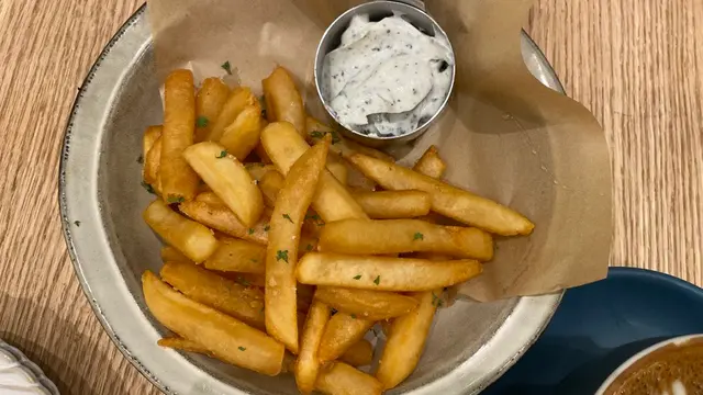 薯條size中等,唔會炸到好脆而中間仲可以有薯蓉嘅口感 唔會太熱氣,配埋邪惡 😈黑露醬 ,簡直停不了口😅