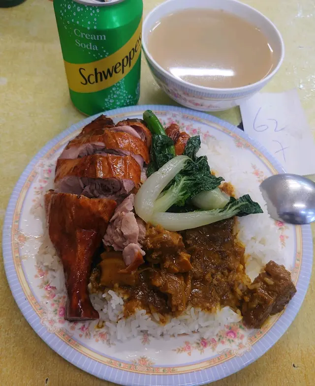 全港十八區既街市既熟食中心裡總會有一兩檔特別出色是日係鵝頸街市附近做野就上左鵝頸熟食中心醫肚知道呢度有兩間咖喱幾好今次去食海記!另一間好多年前已經試過距個(咖喱羊腩)同(燒鴨): 回憶下距個咖喱羊係幾多膏同有膻味(咖喱汁就無乜味得個死辣🤢),燒鴨