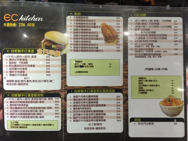 係元朗的漢堡店EC Kitchen出曬名做手打漢堡好好味。一搵之下原來係荃灣灣個景花園商場都有間。唔洗入元朗都有得食。荃灣呢間係係保齡球場上面,好多打波既人都會上去食咖。