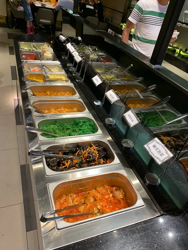 餐廳環境舒適,地方濶落。一入門口兩邊擺方著長餐枱,放滿了許多餐前小食同熱葷,任君選擇。