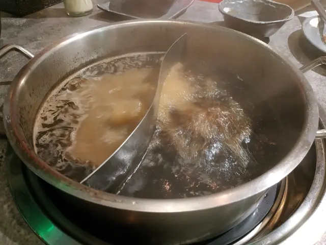 我哋選左黑蒜湯底加壽喜燒鍋底,壽喜燒甜甜地配合肉特別好味道,而黑蒜配合菜就比較夾。