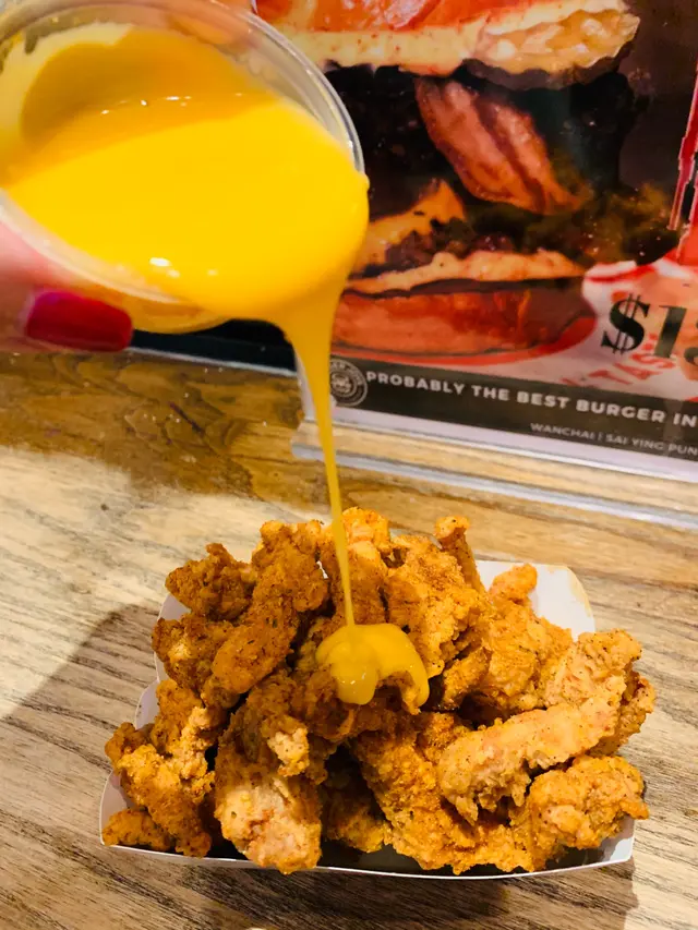 真材實料分量超多,外層炸得酥脆可口,雞肉多肉汁,配搭芝士汁和秘製辣醬,簡直係雙重好味。