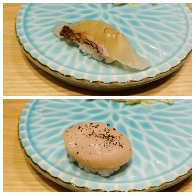 帆立貝壽司,加了碳鹽薄薄不會蓋過鮮味