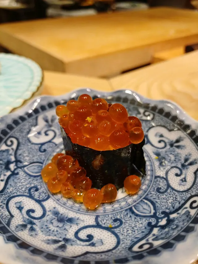 青森縣三文魚子,比普通的魚子甜身少少,加了柚子皮青檸汁,不會膩