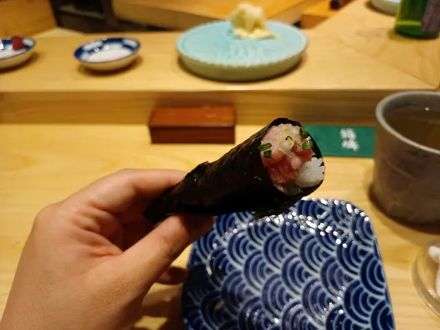 蔥吞拿蓉手卷,脆脆紫菜配濃味的魚蓉好夾