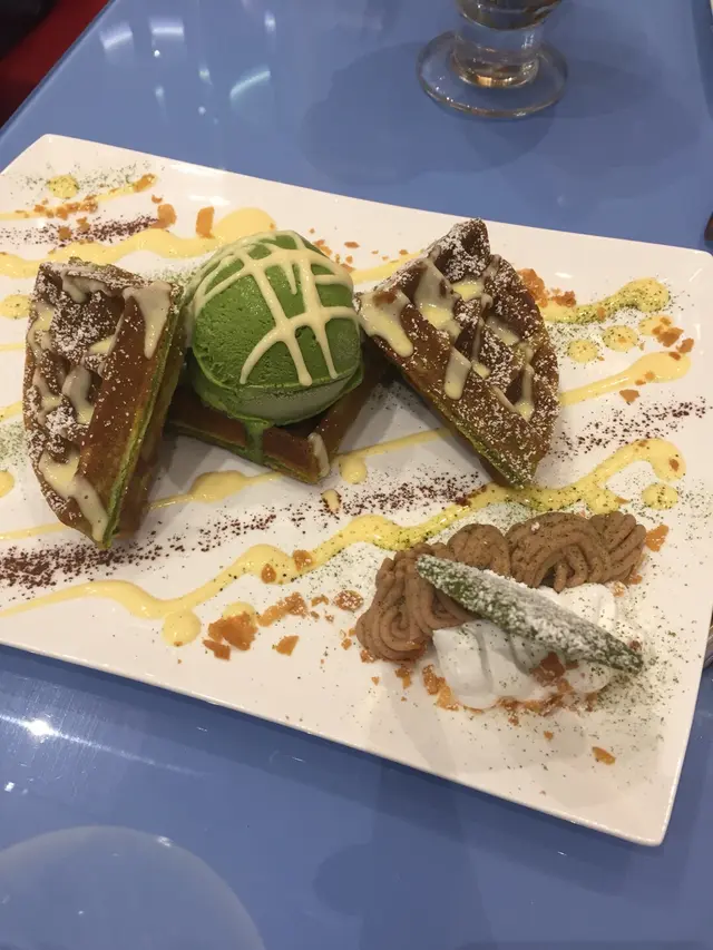 而下者係抹茶窩夫,抹茶雪糕相比軟雪糕較濃味,窩夫熱辣辣,一啖雪糕一啖窩夫,Good
