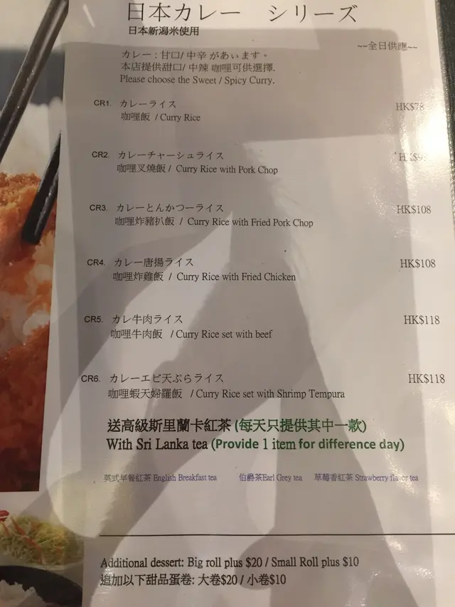 以下係部分餐牌: