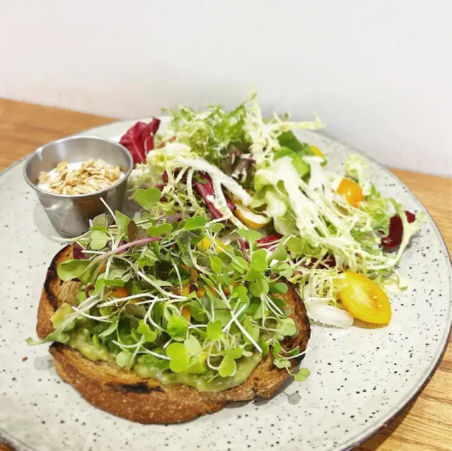 因為天氣實在太熱,所以唔想食飯同麵,揀咗牛油果芒果吐司(佢配上沙律同乳酪)。