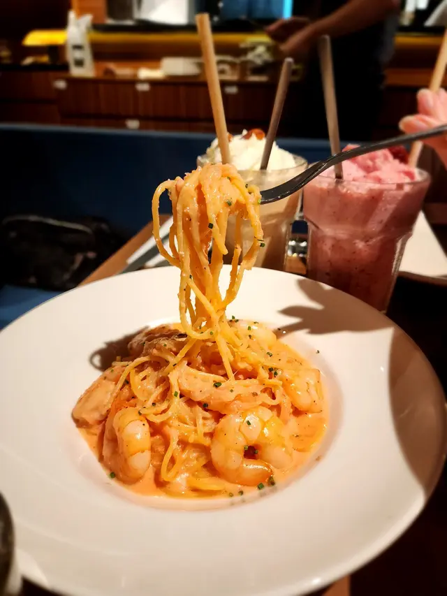 意粉煮得剛好彈牙,明太子忌廉醬汁濃郁香滑,配上新鮮大蝦,令人越食越想食。