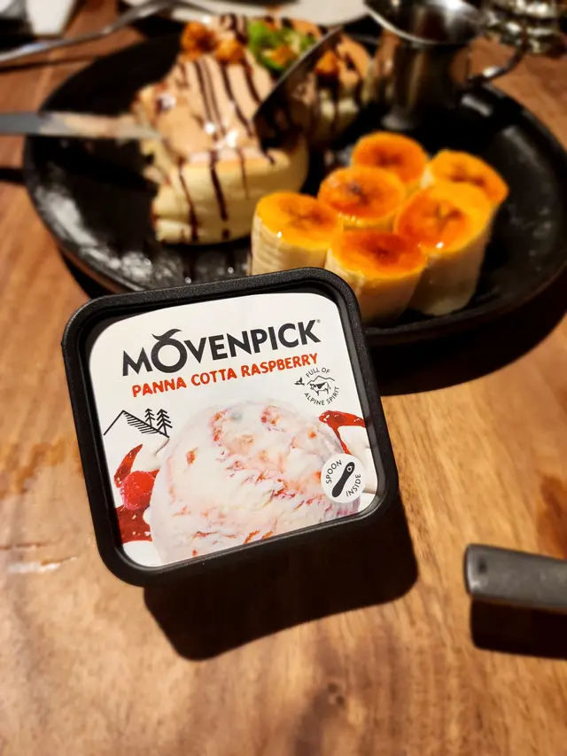 梳乎厘班戟香軟可口,搭配榛子朱古力同焦糖香蕉,絕對是perfect match。原來雪糕係盒裝另上,充滿驚喜。