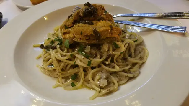 一早在網上訂位,去到環境可以,如二人台就有些迫,但都可以接受,頭盤先食生蠔,新鮮海水味重,推介,之後龍蝦湯,味濃鮮味,海薩沙律新鮮,主菜10安士肉眼,上台時只是溫暖,不夠熱,扒味個人覺得一般,而另一個主菜就係黑松露海膽意粉,黑松露重味加海膽既鮮味,真係好match呀