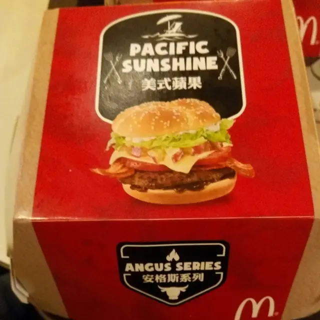 這個安格斯系列的"美式蘋果"漢堡剛推出了幾天, 我就去試下了~ 水準以$36一個餐黎講算係認真不錯, 個包幾大個, 入面有大塊蕃茄, 成大條煙肉, 牛肉, 牛肉底下的醬汁, 好多生菜, 沙律醬, 芝士同埋爽口蘋果切粒. 塊包的口感比平時食開的麥記包硬少少, 塊牛肉就有少少乾左啲, 不過overall算幾好味, 食完又好飽, 買呢個餐仲有個焦糖新地的coupon送, 幾抵食!!