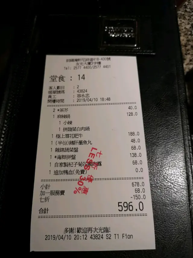 美美台式火鍋 mic909Level 32019-04-13101 views Follow 系銅鑼灣呢邊行街,順便夜晚喺呢邊食飯。朋友提議去食火鍋所以就選擇了養生殿台式火鍋。餐廳嘅裝修係以古色古香,好友台灣嘅風味。座位之間有風平隔住,相當有私人空間.而鍋底方面就選擇了麻辣鍋酸菜白肉鍋。麻辣鍋嗰邊主要有目鴨血,而酸菜白肉鍋就10分開胃極上雪花肥牛成為$188,入口即溶價錢合理。鵝肝墨魚丸味道一流食菜又唔知食咩好,最啱就叫雜錦蔬菜選擇多。海鮮拼盤有蝦,帶子同鮑魚,其實每樣都好新鮮。啲鮑魚口感好爽口,蝦好鮮味。杞子菊花圓肉露最啱一邊火鍋一邊飲。The above review is the personal opinion of a user which does not represent OpenRice's point of view.LikeShare美美台式火鍋 養心殿台式養生鍋 https://s.openrice.com/QrKT0wcmp00Report Post Ratings5Taste4Decor4Service4Hygiene4ValueDining MethodDine InSpending Per Head$300