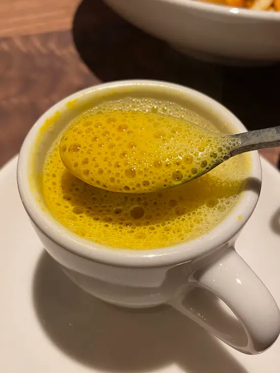 把香濃幼滑的南瓜湯打成泡沫,連着空氣一起喝下去竟然有清新輕鬆的感覺。如果覺得好喝,一杯仔唔夠喉,同樣歡迎無限添飲。