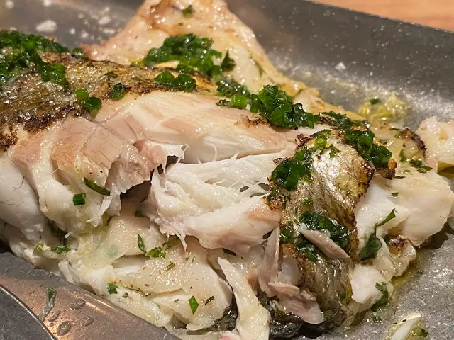 除了正中央的脊椎骨外,其餘的細骨早已被廚師清除了。 因此我們可以放膽大口大口吃鮮嫩的魚肉。