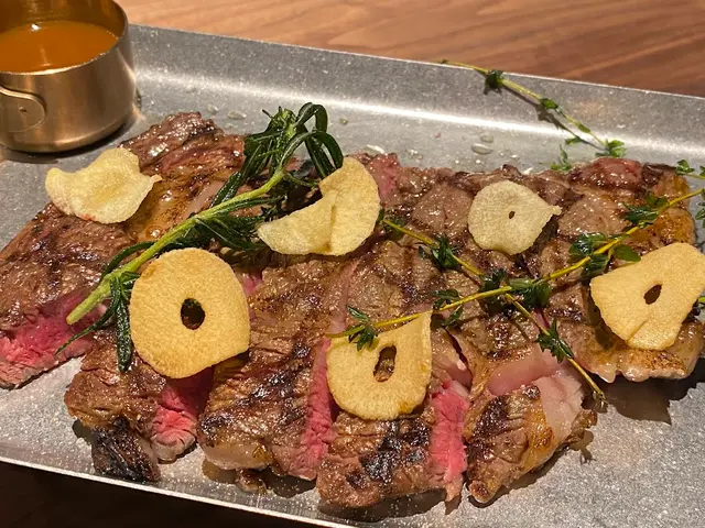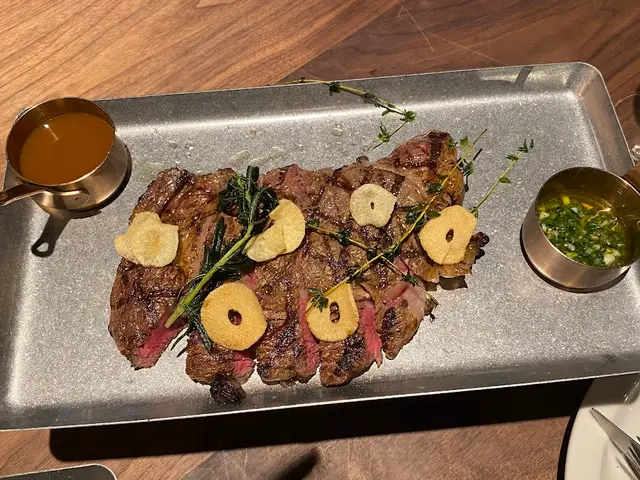 紅肉當然要配上味道相對濃烈的香草和酥炸蒜片,旁邊的燒烤汁反而沒有蔥油醬吸引。