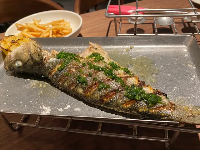 香草焗原條法國鱸魚。魚肉鮮嫩,伴着香草焗製,把鮮甜未也引發出來。