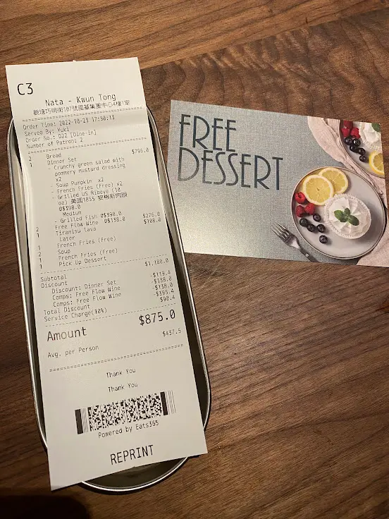 離開餐廳前還送我們一張免費甜品 Coupon,下次再來就可以免費品嚐甜品。