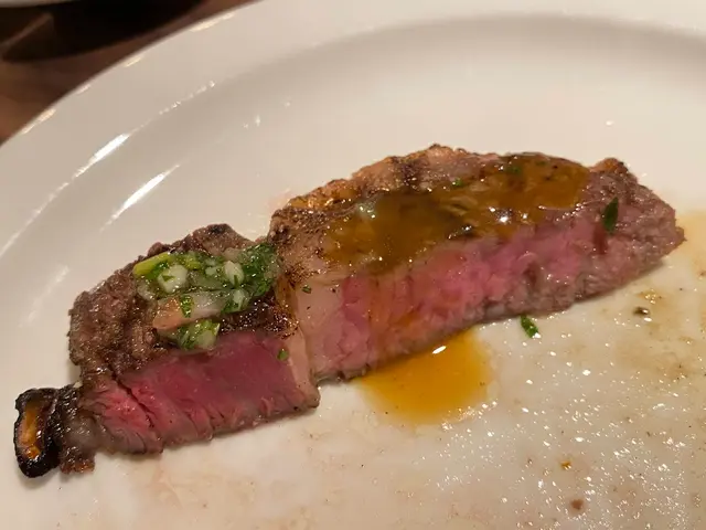 五成熟的 10oz 美國 1855 安格斯肉眼牛扒切件上,一出場已經非常吸睛。