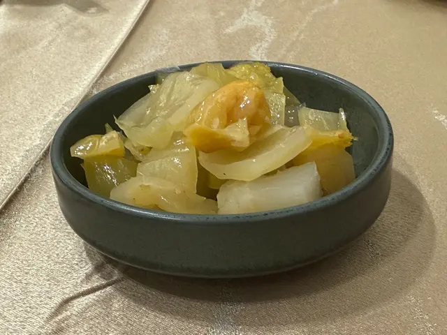 侍應會捧上功夫茶同一碟小食酸菜。