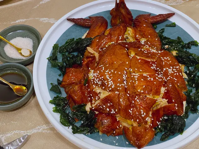 四寶片皮雞~將炸好嘅雞先片皮,雞肉切絲再拌上西杏、花生、提子、藍莓乾、腰果、合桃等,吃落雞肉嫩滑皮脆口感豐富。