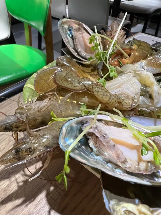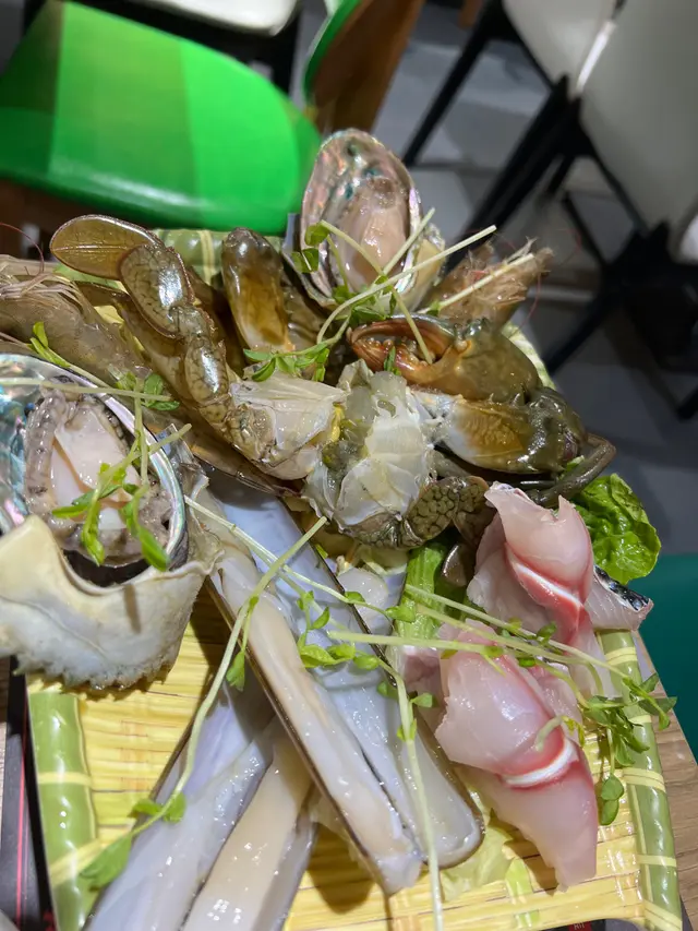 火鍋配料,蔬菜同海鮮粥。份量都好足夠,每款海鮮都有教煮幾多分鐘,例如鮑魚係3分鐘,入口剛剛好,鮑魚質感軟身。聖子都新鮮,彈牙。肉蟹同海蝦晶凝通透,對於小店處理海鮮油這種新鮮嘅程度,實在驚喜。食咗海鮮同