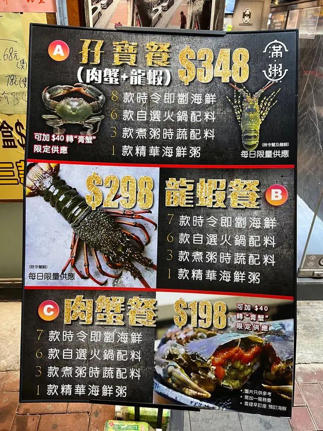 火鍋。平日都幾多熟客幫襯,坐位主要卡位。海鮮餐有龍蝦餐包括七款即劏海鮮,六款自選
