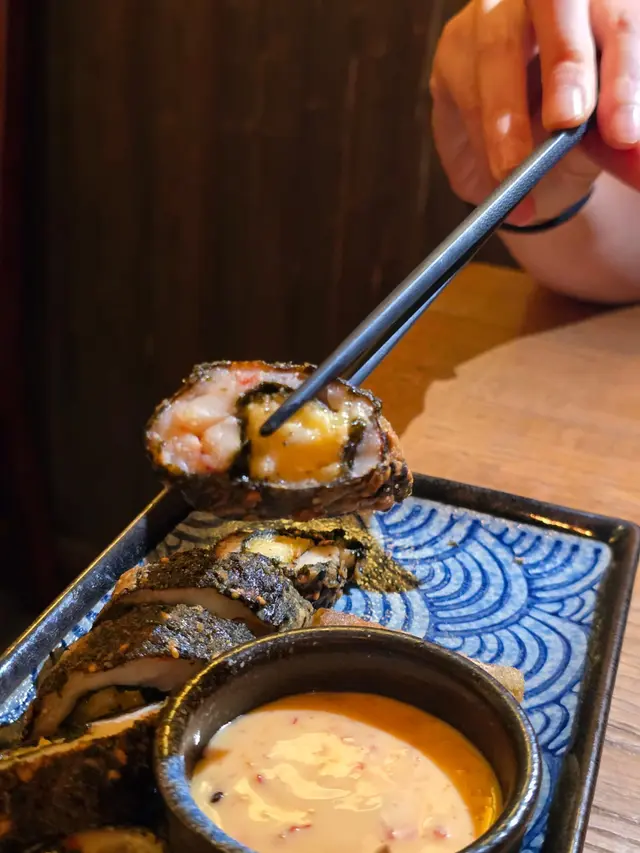 用紫菜包住彈牙嘅墨魚滑同大蝦肉,夠晒特別,鮮味十足😬