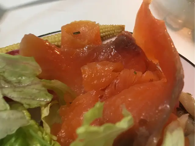 除左好多綠色蔬菜之外,店主仲好有心提醒我地趁熱食左熟食(蒜片牛柳粒、牛油檸檬帶子、香煎虎蝦、鵝肝多士)再慢慢試冷盤(煙三文魚刺身、榮螺)。