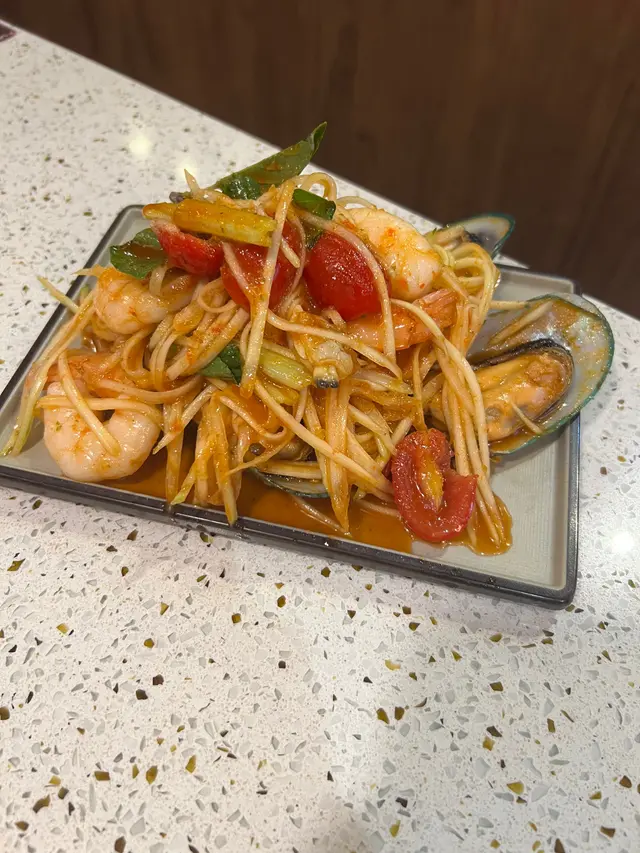 沙律材料豐富,有大蝦,花甲、青口,酸酸辣辣冰冰涼涼好開胃👍🏼