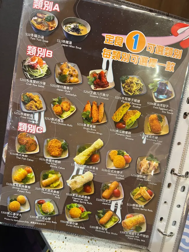 餐單款式好多,又多小食,揀左一輪最後揀左呢幾款試下😋呢到定食基本上可以包熱飲,同A/B/C湯或小食組合任揀一款,真係好豐富!