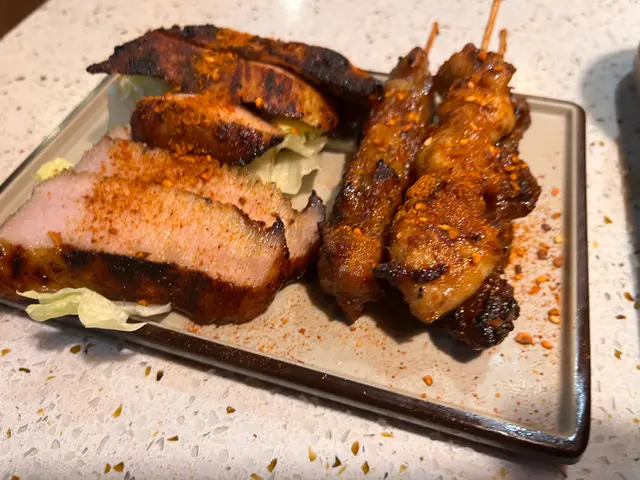 燒豬頸肉拼盤同小食拼盤都係份量十足,一盤可以滿足唔同口味嘅食客。燒豬頸肉質地鬆軟多汁,同埋串燒都燒得啱啱好,唔會太過焦或者太生,岩岩好。