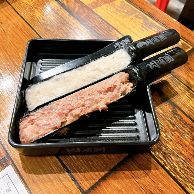 自助吧食物黎講,種類的確唔算太多,亦都唔算太特別,都有丸、豆卜、台灣腸、萵筍等等,但係。。。唯一有一樣最特別嘅係呢一間肉浦團