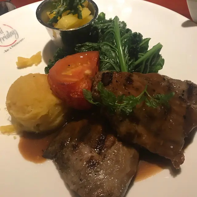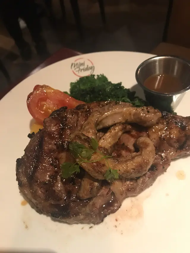 另外牛肉眼扒拼豬肋條則充滿肉汁,剛剛是朋友要求的7成熟,牛扒肉味很濃兼大大塊,值回票價!