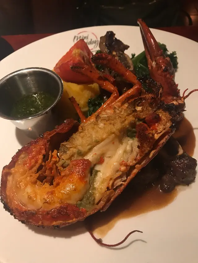 朋友點的香烤波士頓活龍蝦配牛肋排,分量很大,龍蝦新鮮,食到海鮮味,牛肋排略嫌有些少乾身。