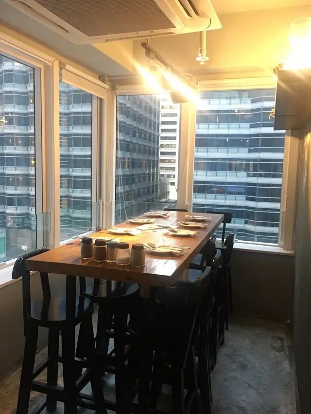 餐廳其中一個角落設大玻璃,可欣賞城市夜景。加上設有高身大長枱,最適合一大班朋友聚會。