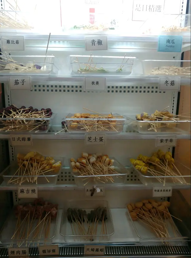 首先有個食物櫃擺咗好多不同嘅串串。