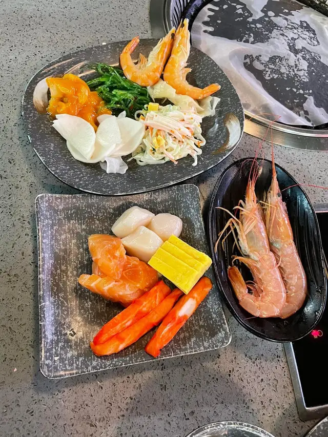 放題最吸引我的是菜品的種類極其豐富。首先是各式烤燒類,有香嫩多汁的雞翼、雞扒和醬燒牛肉,肉質紮實,料理精湛,讓人回味無窮。另外還有色澤誘人的醃製肉品,如醬燒豬頸肉,入口鮮美Q彈,別具特色。海鮮方面,鮮活的