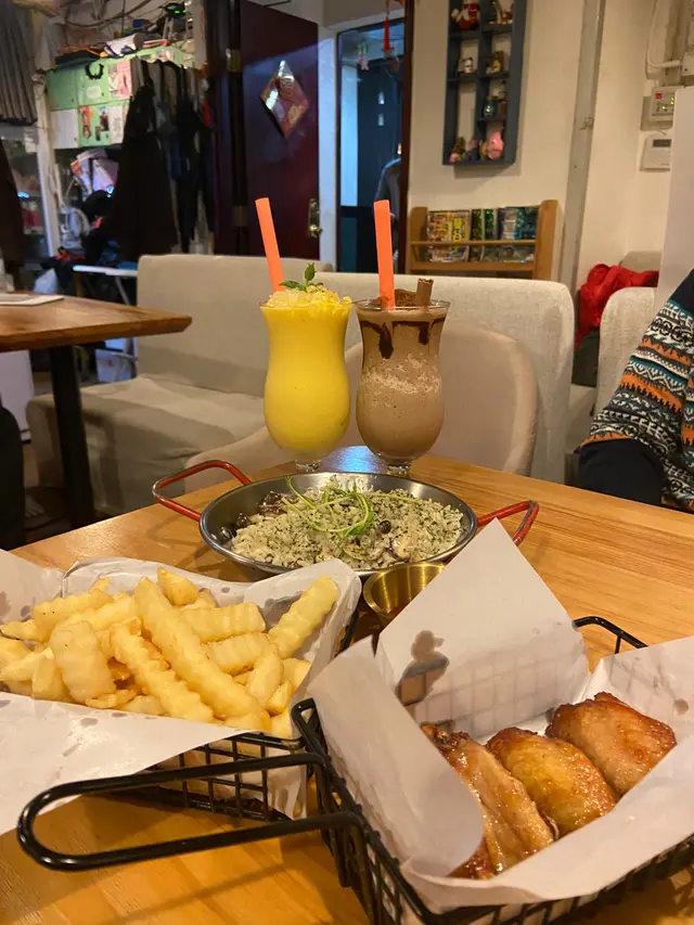 有書睇,有board game,現場好闊落,坐得好舒服。出去拎本書睇下,等一陣就有好多野食。如果人多的話就可以玩住game 等