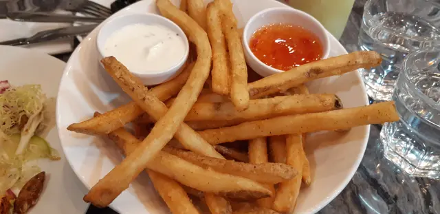 粗薯條係見到隔離有人食吸引到要點,因為炸粗薯係本人杯茶,如此粗長係坊間難得一見,配sour cream同泰式辣醬又幾特別