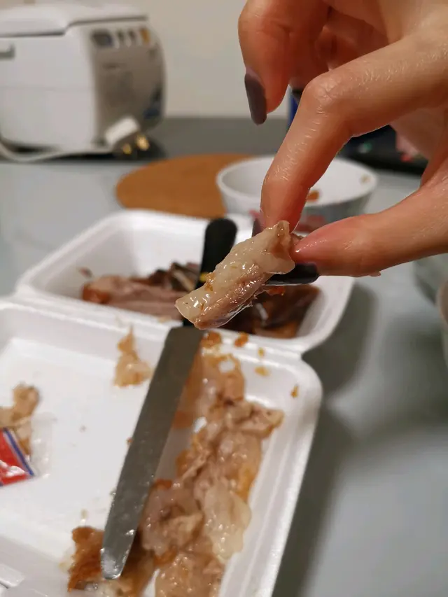 自殺式燒鵝,勁難食。 hyphy852Level 22020-07-19820 views Follow 首先,請看看圖。小弟今晚叫左個燒鵝下庒外賣 ,價值 $110。買到返家裡時,打開個盒,以為自己叫錯左叫燒鴨。從來沒見個d燒鵝d肉可以那麼雪白和沒有味道。我明白燒鵝重點係食皮,我個人都很喜歡食燒鵝皮,但係請你先看看圖,肥到呢。。。d皮好似橡膠。沒辦法,呢到係貧窮區,連隻鵝都無得做運動。真可憐。。。還有,原來叫燒鵝下庒係送鵝頭 (有圖)。。。今次真係中頭獎!如果想有三高,可以考慮來呢間幫親它的肥味燒鵝。所以今晚呢碟菜叫做... “自殺式燒鵝”!The above review is the personal opinion of a user which does not represent OpenRice's point of view.3Share自殺式燒鵝,勁難食。 燒味家 (昌利樓) https://s.openrice.com/QrKT0Oh8v00Report Post Ratings1Taste1Decor1Service1Hygiene1ValueDate of Visit2020-07-19Dining MethodTakeAwaySpending Per Head$110 (Dinner)