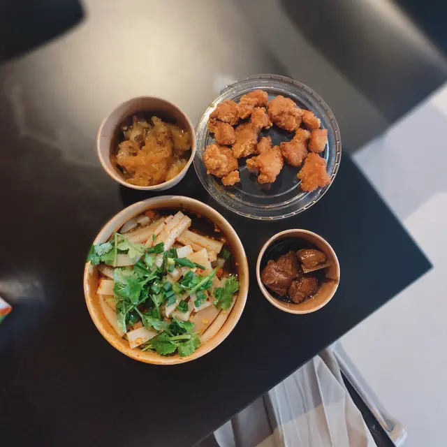 ・味道:涼拌手工涼粉麻同辣味都好足,啱晒重口味人士,但唔食得辣嘅朋友真係唔好試喇哈哈,at least食到譚仔五小先食呢款啦😂。鹽酥雞粒最好食,醃得入味唔鹹好香口惹味👍!蒜味螺肉就係回憶中冷麵嘅蒜味螺肉,凍嘅爽口偏甜。糖醋骨味道偏淡,正常發揮~