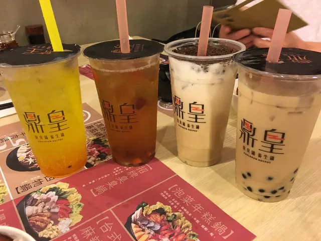 另加$8就可任選飲品,左起百香果芒果梳打、紅棗桂圓杞子茶、盆栽奶茶及珍珠奶茶,各有特色。