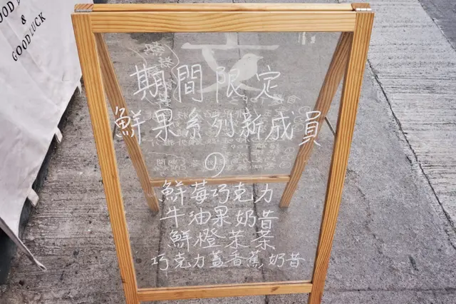 除基本餐牌,晌鋪前仲有一個座地水牌,喺一啲期間限定嘅新品,正正就喺因為見到其中一款新品喺牛油果奶昔