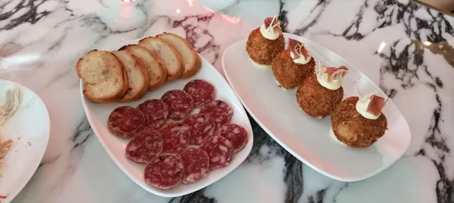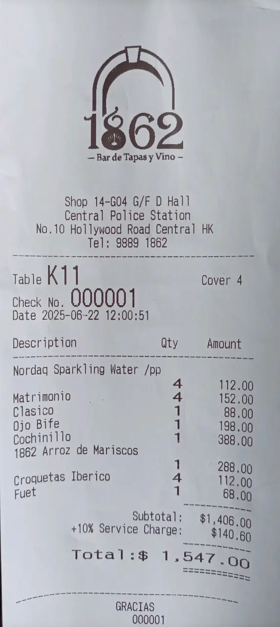 侍應熱情的招待和menu也有很多選擇, 當然要試他的地道西班牙海鮮炒飯, 海鮮種類雖然不多, 但味道很合口味, 燒乳豬皮脆肉滑,那片燒菠蘿很鮮甜, 肉眼扒份量略少, 但質素很高, 而Tapa包括黑毛豬火腿球, 煙燻鯷魚多士都是很美味的, 薯餅和莎樂美腸, 相比之下就較為失色了, 整體餐廳的服務和食物質素都很高, 令朋友對香港美食天堂的盛譽也留下深刻的印象。